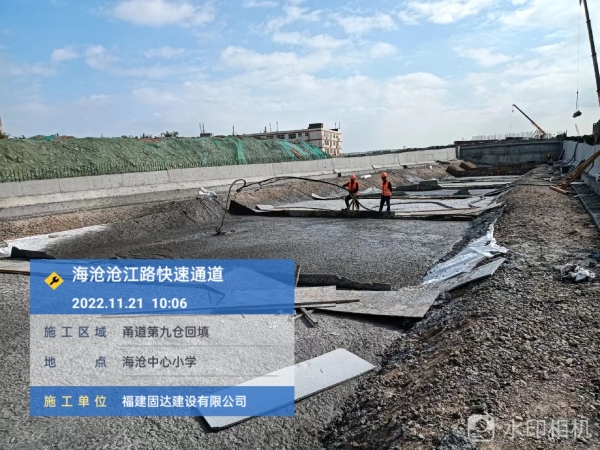 福建固达建设有限公司携手中铁一局厦门公司,承接海沧沧江路快速通道工程泡沫轻质土工程。